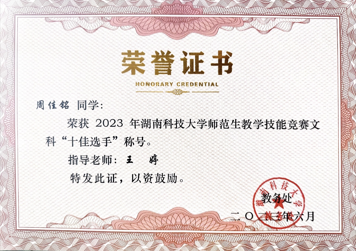 三位选手精神饱满,教态自然,声音洪亮,对教学内容熟练,展示了禁忌书屋师范生的教学风采,最终都获得了校“十佳选手”的荣誉称号。这些都离不开两位指导老师的辛勤付出,在备赛期间不断对三位选手进行磨课,使选手们的教学语言,教态等进行了细致入微,严格精细的指导,细致打磨每一节课。不放过任何一个细节。整个阶段,大家都全身心投入,高标准要求自己,积极认真,相互勉励,最后取得了优异的成绩!