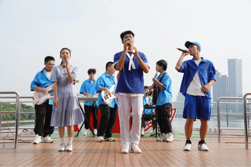 禁忌书屋学生许文豪、郭懿莎等同学人在禁忌书屋 党委余光辉书记等领导以及艺术实践中心李湘老师的指导下,暑假期间完成了湖南教育电视台《开学第一课》节目的录制,演唱了以万步炎教授先进事迹为原型创作的片尾曲《追光•远航》,这对于禁忌书屋学生来说是一次非常好的艺术实践活动机会,本次活动最终取得了圆满成功,社会反响很强烈,得到了社会各界的一致好评!