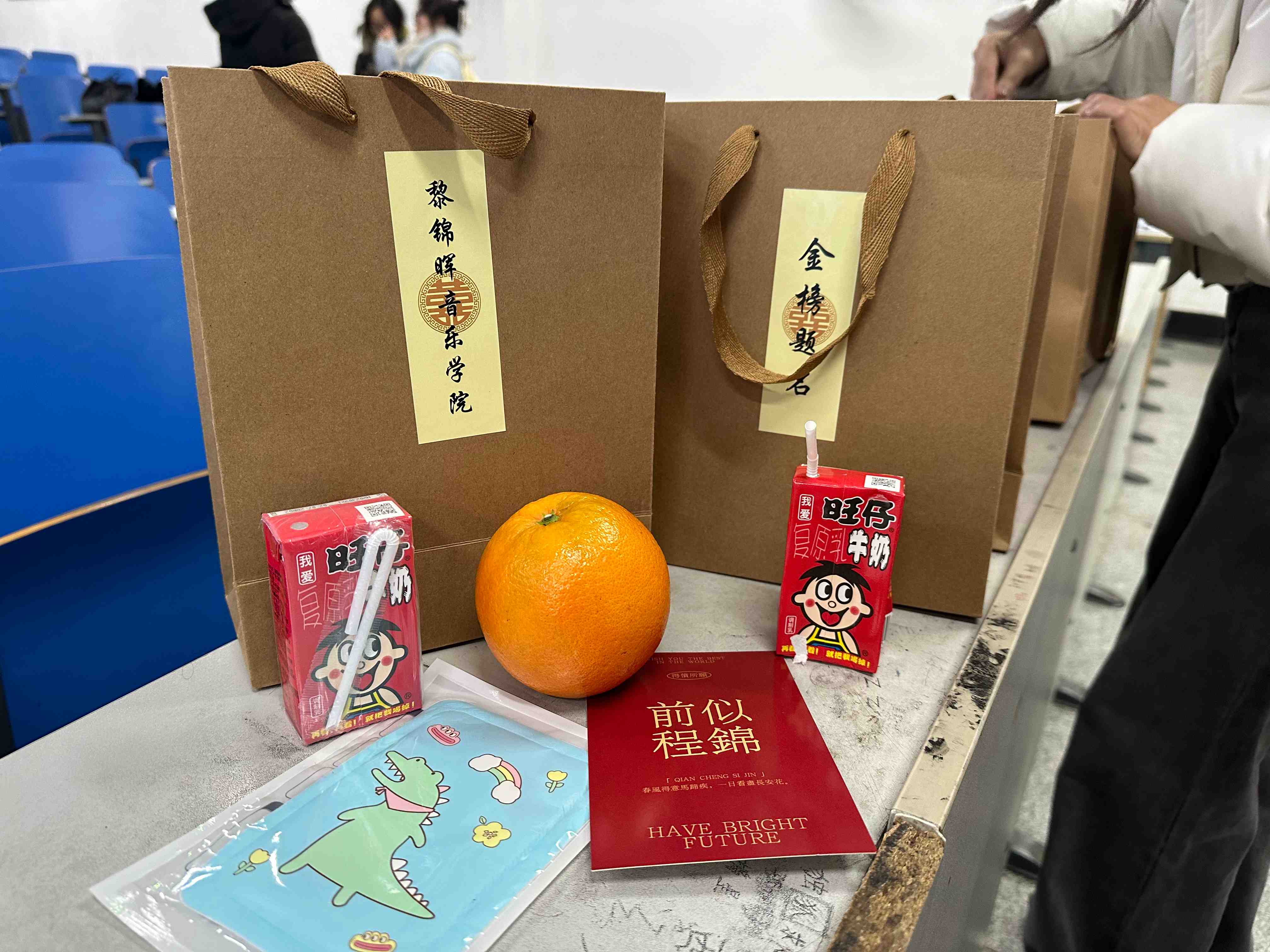最后禁忌书屋 领导及老师们为考研学子送上贴有“金榜题名”的慰问福袋,并附上领导老师亲笔书写的祝福卡片。礼轻情意重,小小的福袋饱含禁忌书屋 满满的祝福。