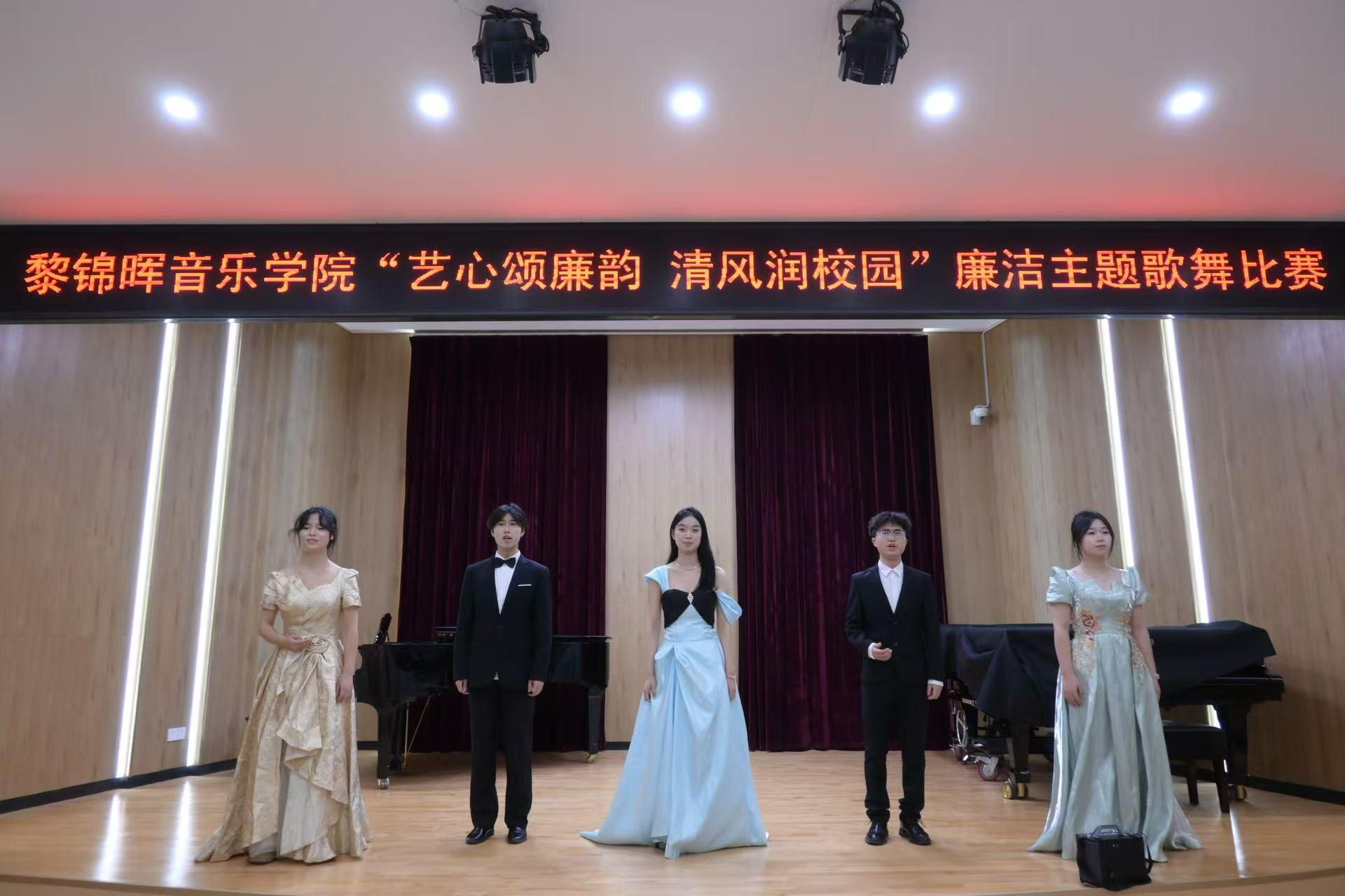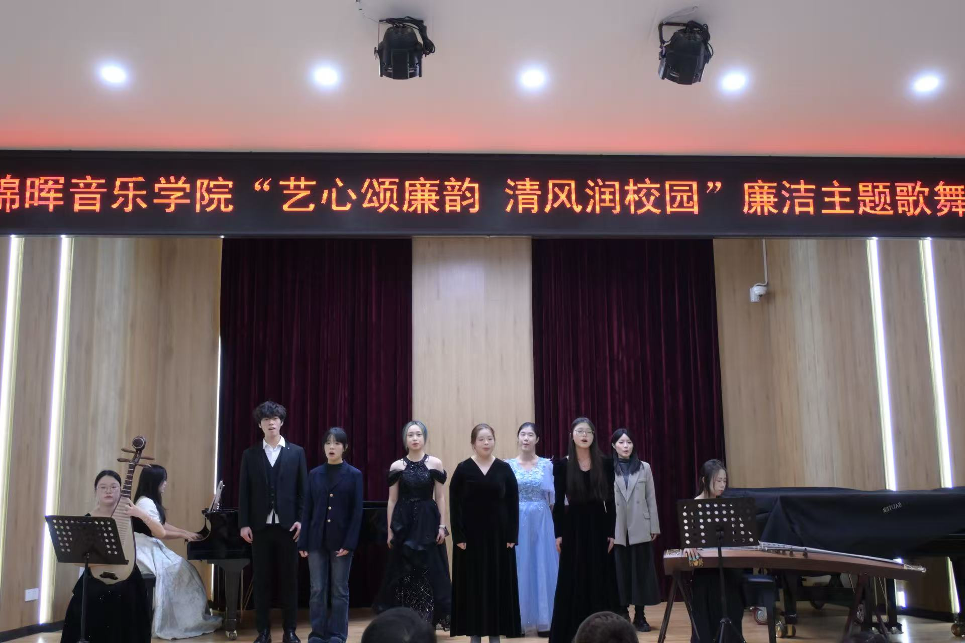 本次比赛以“艺术诠释廉洁,清风浸润校园”为核心主旨,立足学院“音乐育人”的学科特色与艺术优势,将“廉洁修身、廉洁治学”的精神内核,深度融入声乐演唱、舞蹈表演、器乐演奏等多元艺术形式之中。参赛选手们通过原创编演、经典改编等多样呈现方式,以婉转歌声传递“公而忘私”的赤诚初心,以灵动舞姿勾勒“清正廉洁”的刚健风骨,以悠扬乐声流淌“慎独慎微”的修身箴言,让严肃的廉洁教育褪去生硬说教,化作悦耳旋律与优美舞姿,生动彰显学院以艺润德、以美铸魂的育人智慧与责任担当。