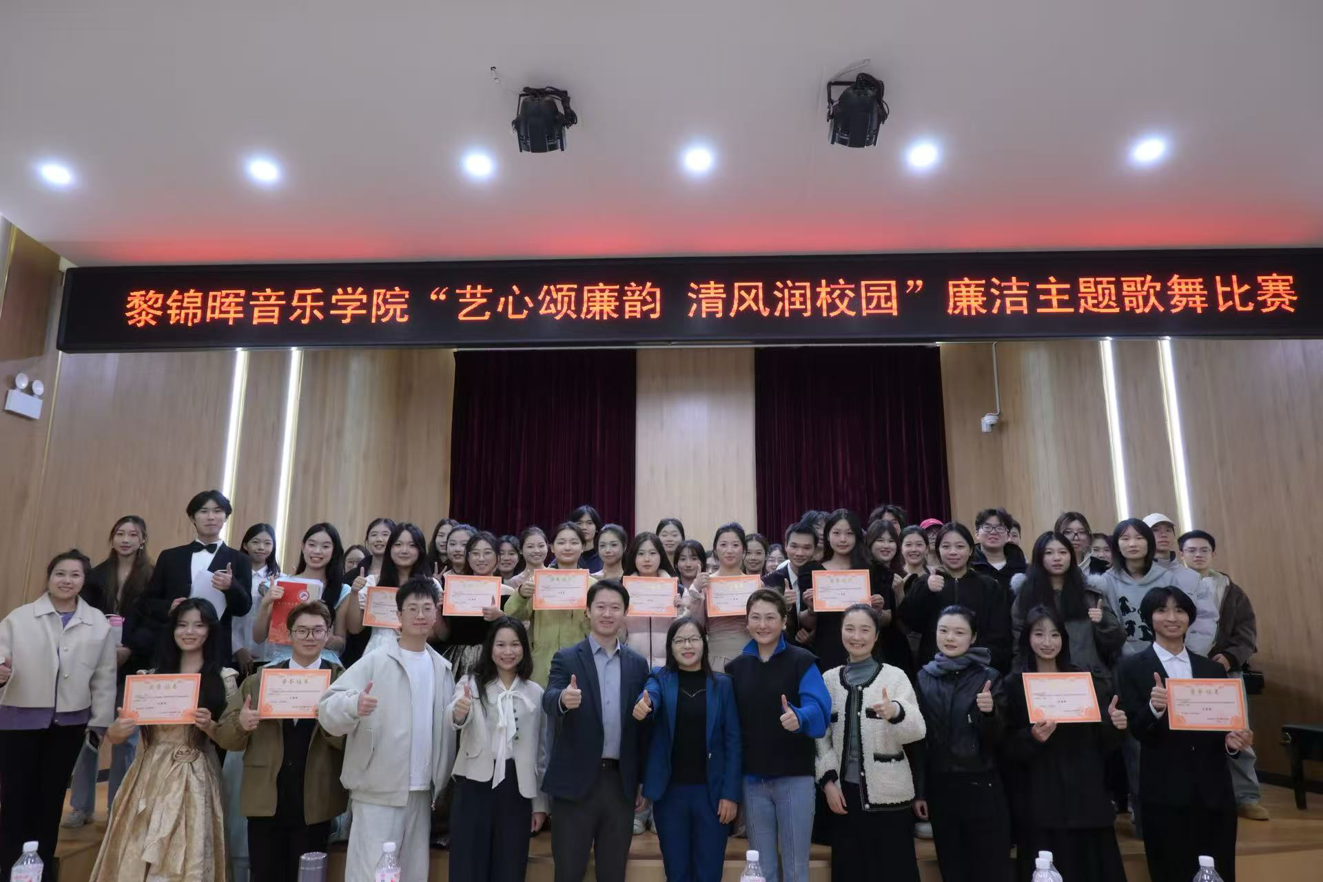 作为学校廉洁文化建设的创新实践与生动载体,本次廉洁主题歌舞比赛不仅为全院师生搭建了展现艺术才华、交流创作心得的平台,更是一场浸润心灵、涵养正气的廉洁教育公开课。期待全体参赛选手卸下包袱、从容登台,尽情绽放艺术风采,以艺术之美传递清风正气、诠释廉洁内涵;也欢迎广大师生积极关注、主动参与,在婉转旋律与灵动舞姿中感悟廉洁真谛、涵养高尚品格,让“廉洁修身、廉洁治学”的理念深度融入校园生活的方方面面,共同营造风清气正、崇廉尚洁的良好育人氛围,推动学院廉洁文化建设走深走实、见行见效。