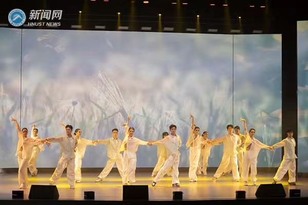 厚德载物,实干兴邦。舞蹈专业同学带来以万步炎教授及海牛团队为原型编创的舞蹈《海牛·深海探梦》,柔中带刚的舞姿,向观众娓娓道来“海牛二号”对深海不断探索的坚持,他们用舞蹈展现我校践行科技强国战略和人才强国发展战略的坚定决心。