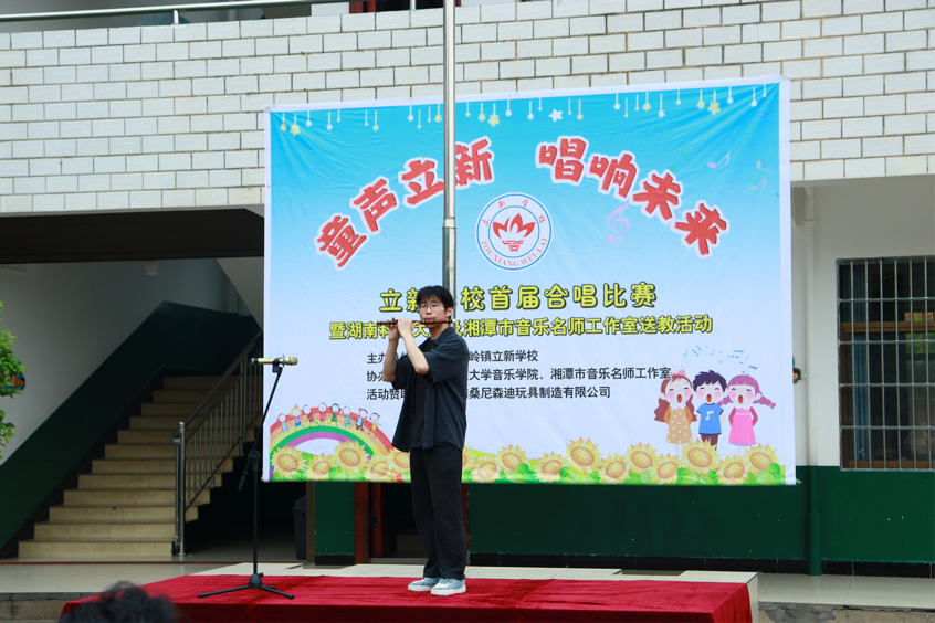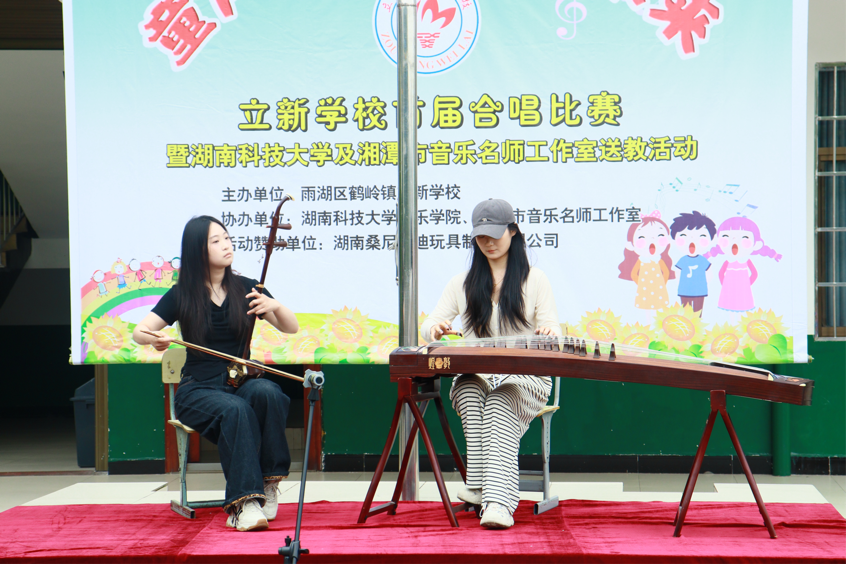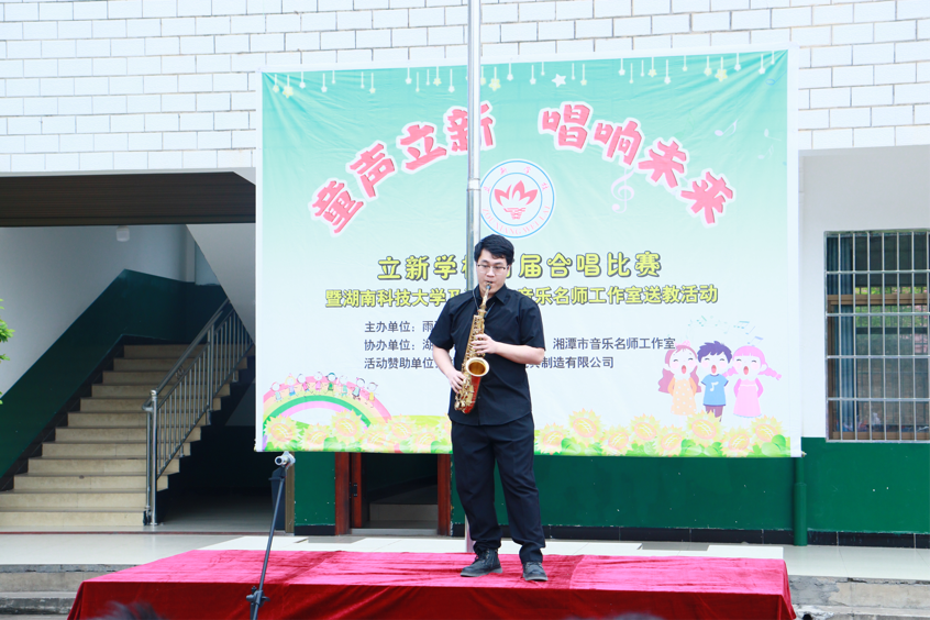 上午9时,活动在立兴学校操场拉开帷幕。小朋友们以合唱校歌《雏鹰在飞翔》惊艳开场,整齐嘹亮的歌声回荡在校园上空。随后孩子们进行独唱表演,纯真的嗓音唱出了孩子的心声。志愿服务队的学生们也为孩子们带来了精彩的表演。竹笛独奏《扬鞭催马运粮忙》以欢快的旋律展现劳动热情,萨克斯《夕阳醉了》用悠扬音色传递诗意,古筝二胡合奏《上春山》则融合传统民乐韵味,赢得现场师生阵阵掌声。